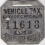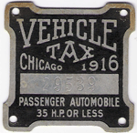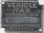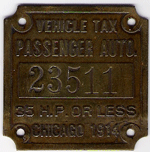 ![]() 1913 PASSENGER AUTO VEHICLE TAX 35 H. P. OR LESS | ![]() 1913 ONE HORSE WAGON VEHICLE TAX | |