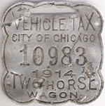 ![]() 1914 AUTO LIGHT DELIVERY VEHICLE TAX | ![]() 1914 ONE HORSE WAGON VEHICLE TAX | |