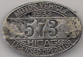 ![]() 1908 TWO HORSE VEHICLE TAX | ![]() 1909 VEHICLE TAX LICENSE | |