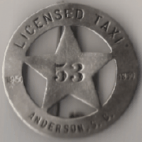 ![]() 1950 ANDERSON, SOUTH CAROLINA LICENSED TAXI | ![]() 1952 ANDERSON, SOUTH CAROLINA LICENSED TAXI |