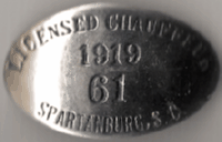 ![]() 1919 SPARTANBURG, SOUTH CAROLINA LICENSED CHAUFFEUR | ![]() 1929 SPARTANBURG, SOUTH CAROLINA LICENSED CHAUFFEUR |