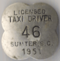 ![]() 1951 SUMPTER, SOUTH CAROLINA LICENSED TAXI DRIVER | |