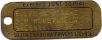 ![]() ![]() 1940/41 SOUTH CAROLINA DRIVER LICENSE | |
