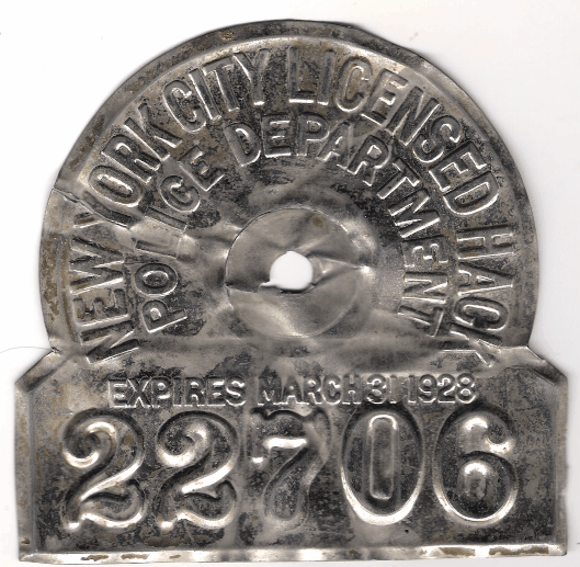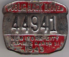 THE BADGE COLLECTION IS FROM 1910-1952. THERE ARE TWO UNDATED BADGES. I HAVE ONE OF THEM. I AM ALSO MISSING THE 1944 BADGE. THE NUMBERS ON THE TAXI PAPER LICENSE MATCH THE NUMBERS ON THE HACK BADGE. TO MAKE MATTERS MORE COMPLICATED, THERE IS A SECOND SET OF NUMBERS ON THE PAPER LICENSE. THESE NUMBERS MATCH THE NUMBERS ON THE STATE ISSUED CHAUFFEUR BADGE. I HAVE ONE SET (1917).