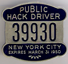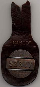 ![]() ![]() 1931/32 PUBLIC HACK DRIVER WITH MATCHING CAB CARD | ![]() 1929/30 HACK LICENSE ![]() 1929/30 HACK LICENSE |