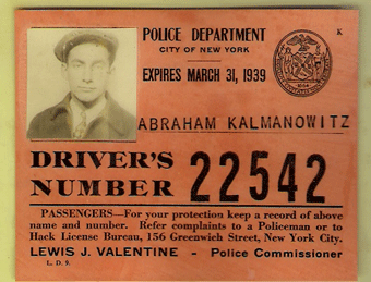 ![]() 1954/55 TAXI LICENSE | ![]() 1957/58 DRIVER LICENSE |