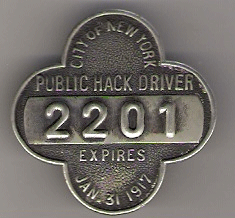 ![]() ![]() 1910/11 PUBLIC HACK DRIVER BADGE WITH HACK LICENSE | ![]() 1911/12 PUBLIC HACK LICENSE |